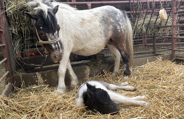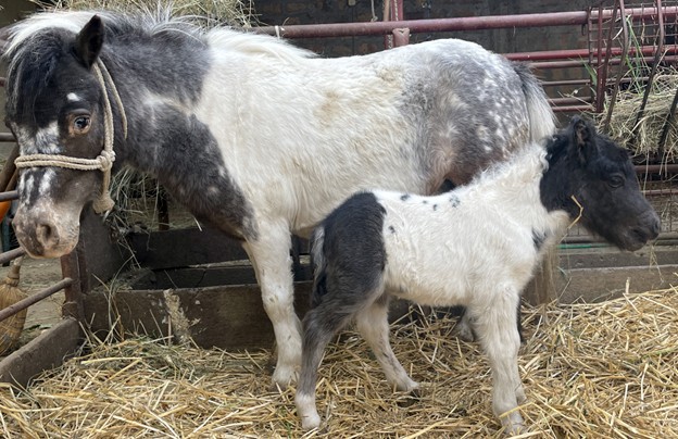 Mali šareni crno-beli Mitar oždrebljen je 12. Aprila 2024. godine od pastuva Kiralja i kobile Mitre.